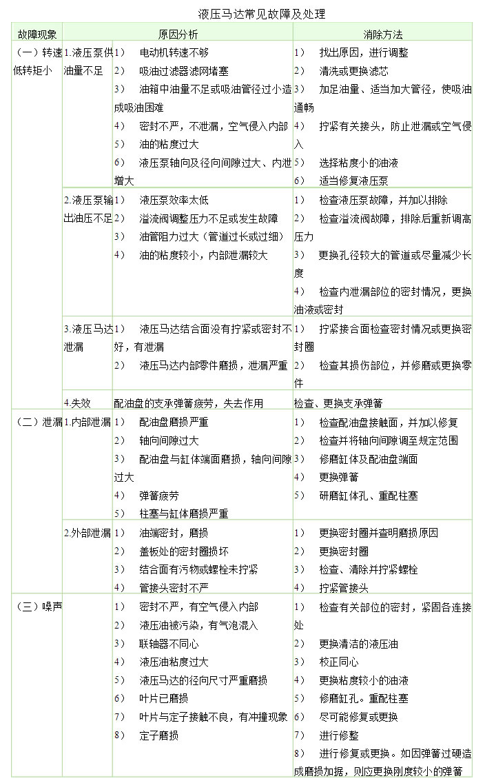 液壓馬達常見故障及處理