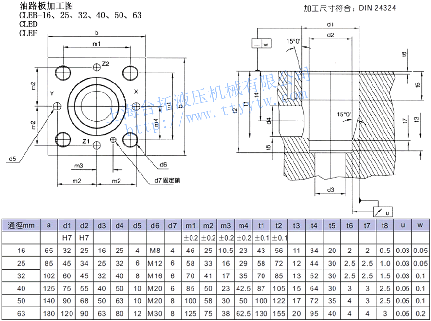 直入式插裝閥CLEB,CLED,CLEF油路板加工圖