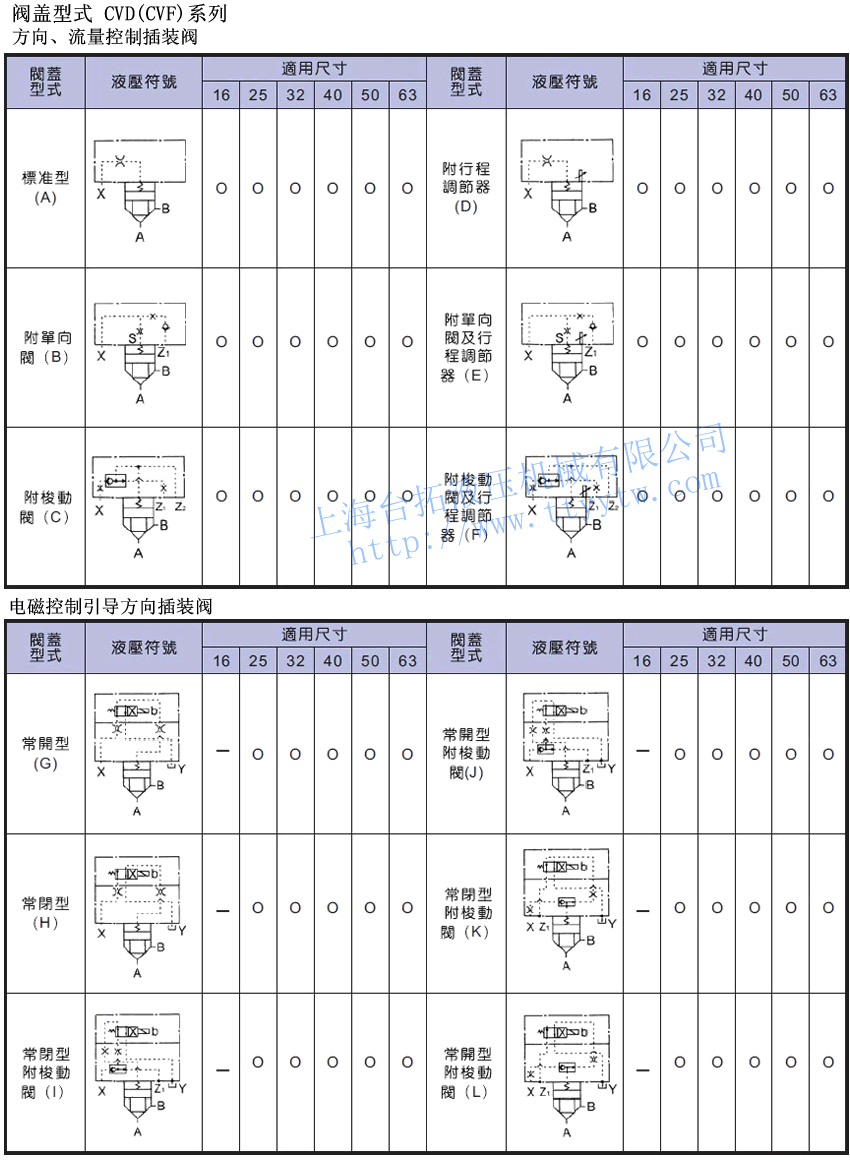 直入式方向流量控制插裝閥及閥蓋組合CVD,CVF規(guī)格表