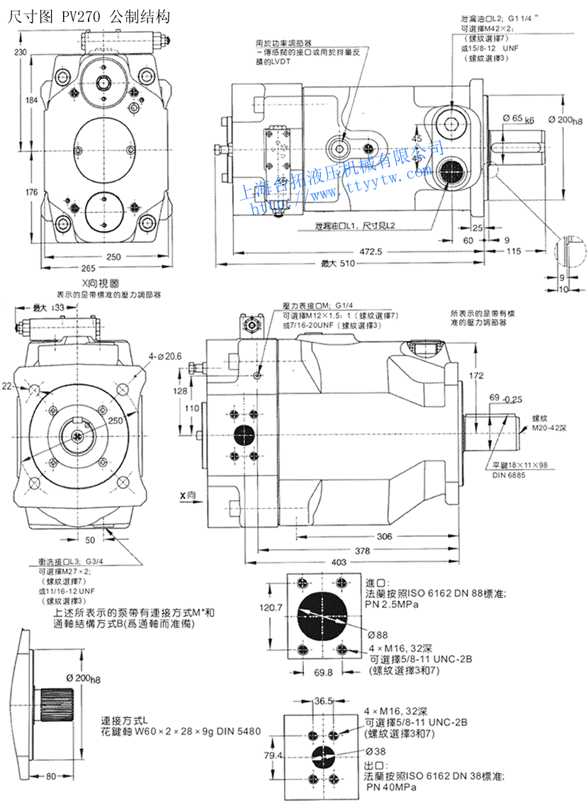 可變量軸向柱塞泵PV016~PV270尺寸圖