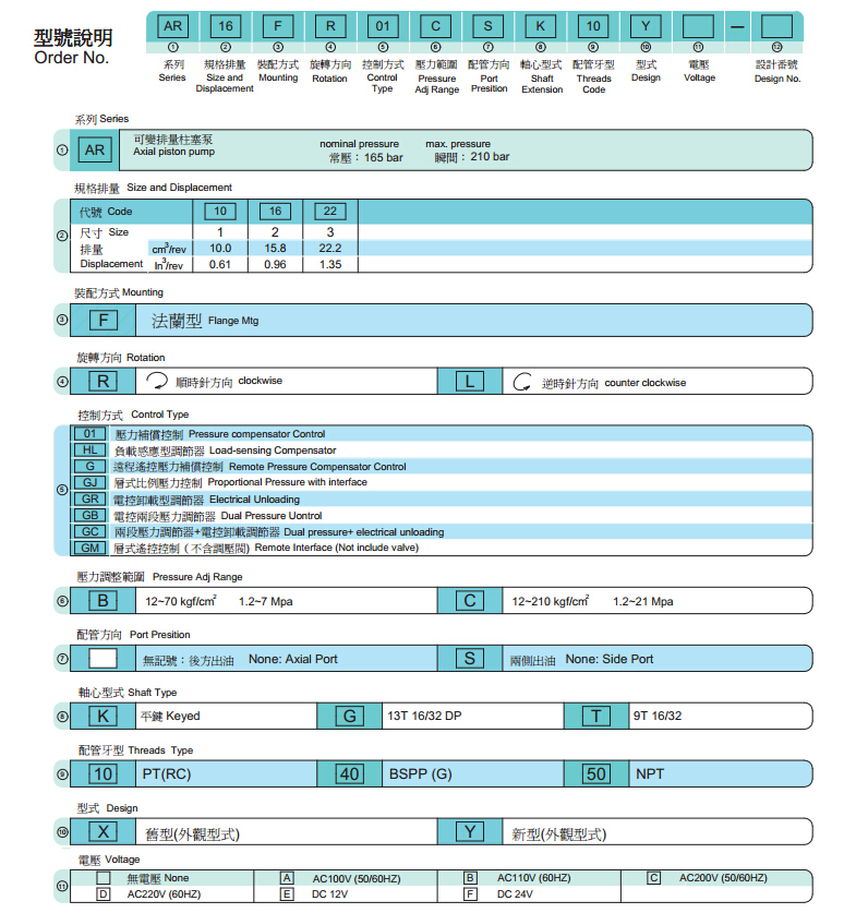 可變排量柱塞泵AR型號(hào)說明