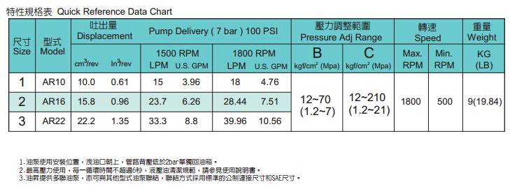 可變排量柱塞泵AR特性規(guī)格表