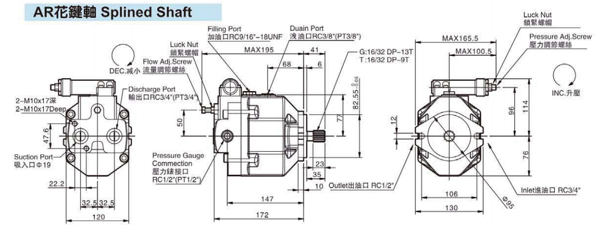 可變排量柱塞泵AR花鍵軸尺寸圖下載