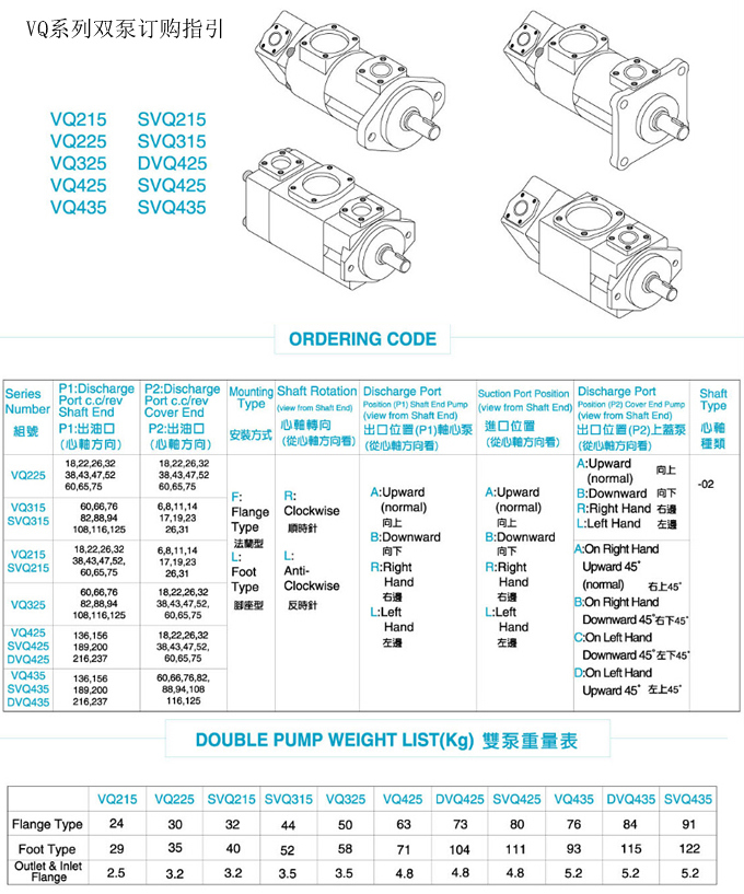 定量高壓雙泵VQ215~VQ435規(guī)格表