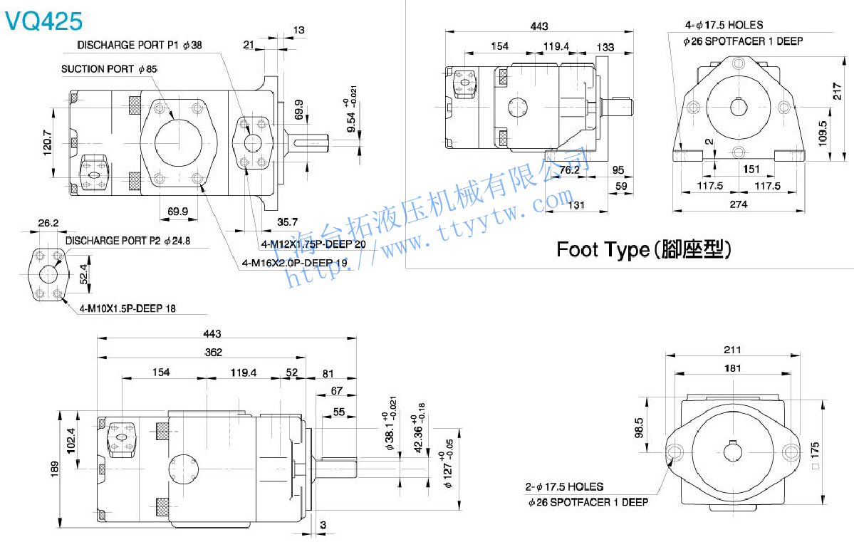 定量高壓單泵VQ325尺寸圖下載 定量高壓單泵VQ425尺寸圖下載