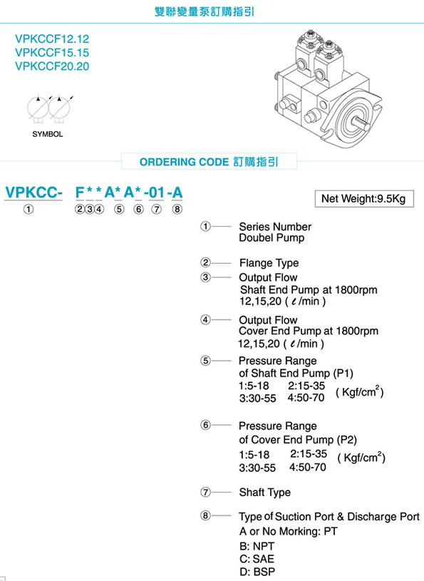 變量雙泵VPKCCF12.12/15.15/20.20型號規(guī)格表