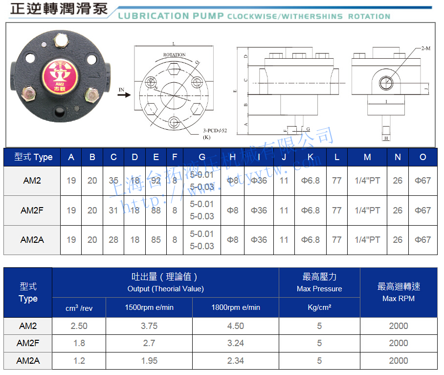正逆轉(zhuǎn)潤滑泵AM2系列規(guī)格表