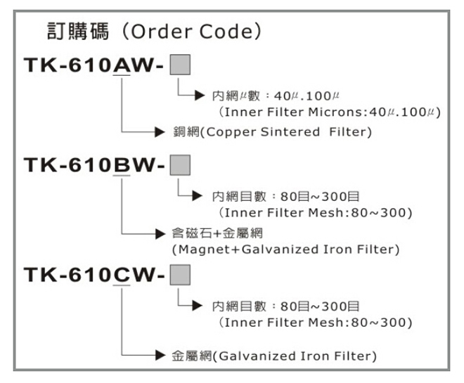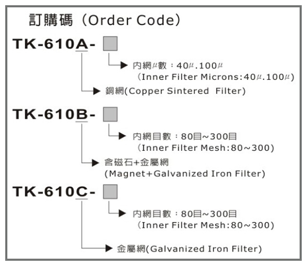 濾油器TK-610訂購型號(hào)