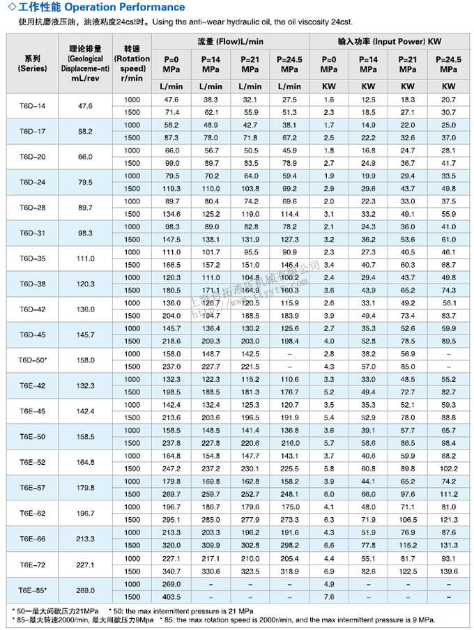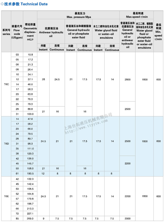 高壓葉片泵T6系列技術(shù)參數(shù)