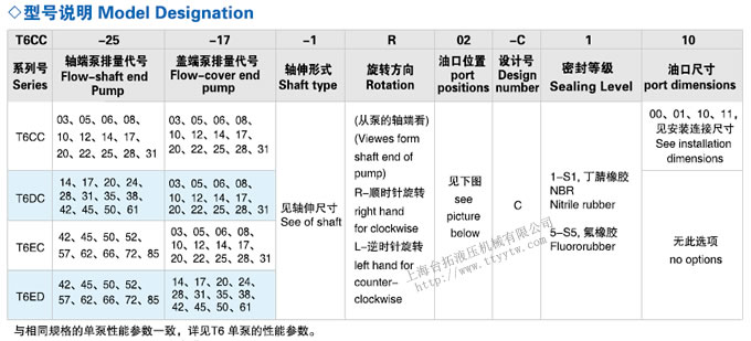 雙聯(lián)葉片泵T6系列型號說明