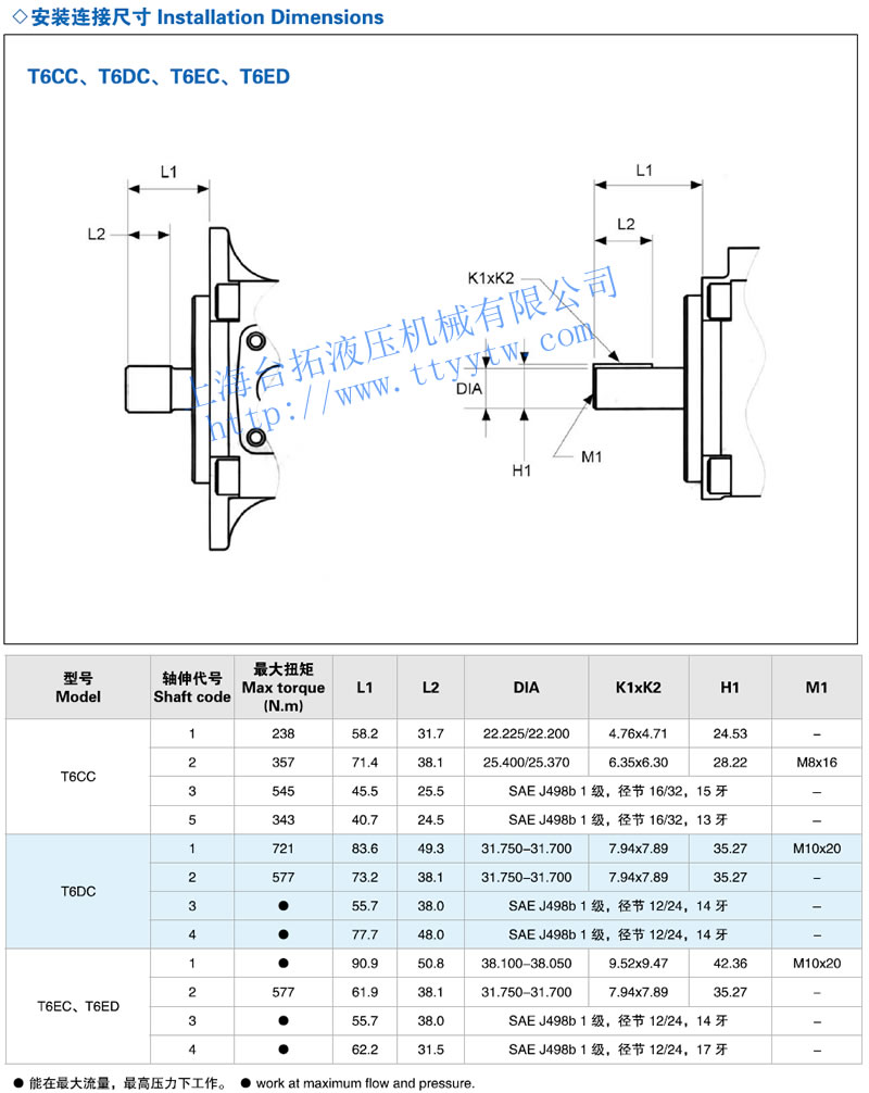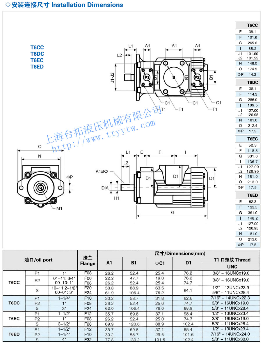 雙聯(lián)葉片泵T6系列安裝連接尺寸
