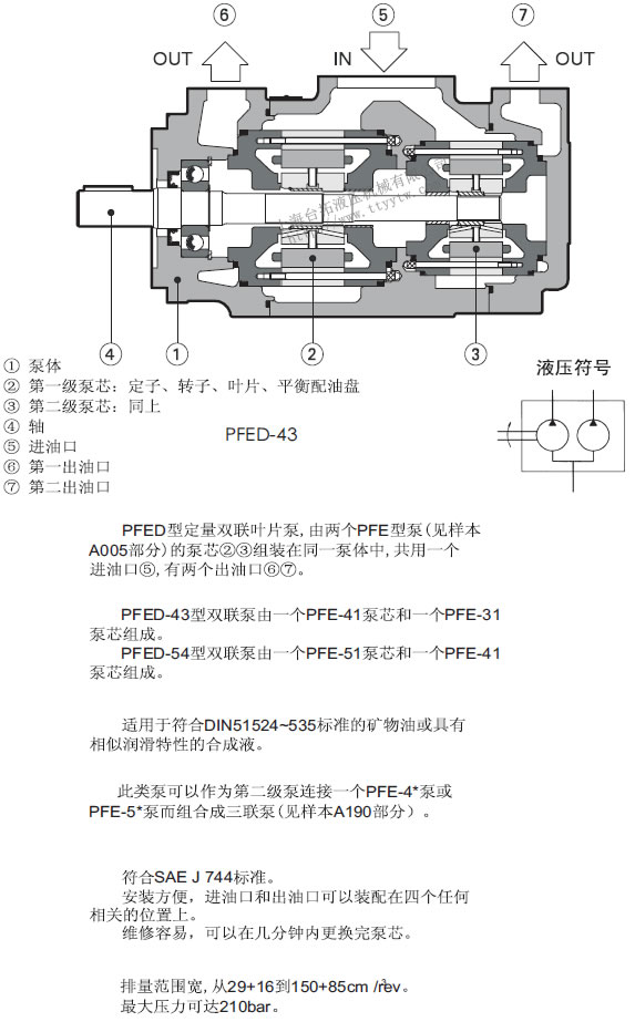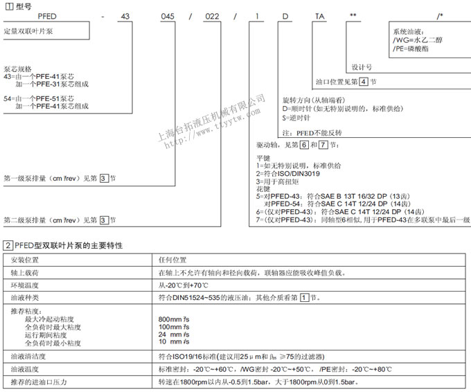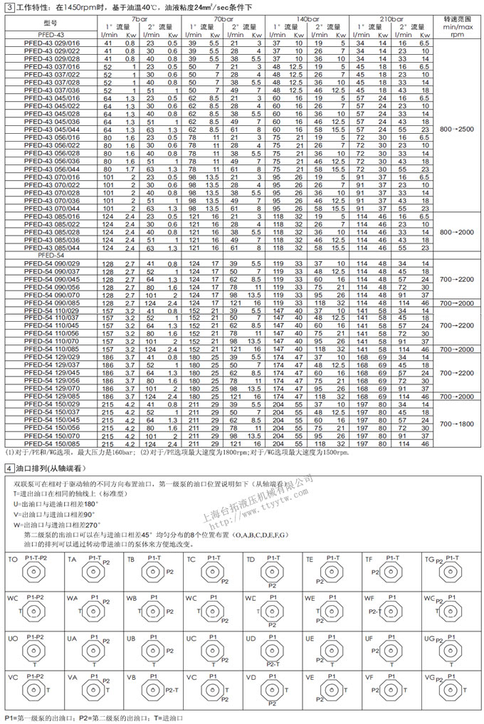 雙聯(lián)葉片泵PFED工作特性油口排列