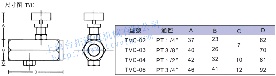 TVC -03 系列號碼 稱呼口徑 管式單向節(jié)流閥