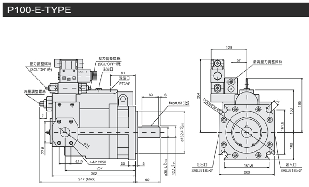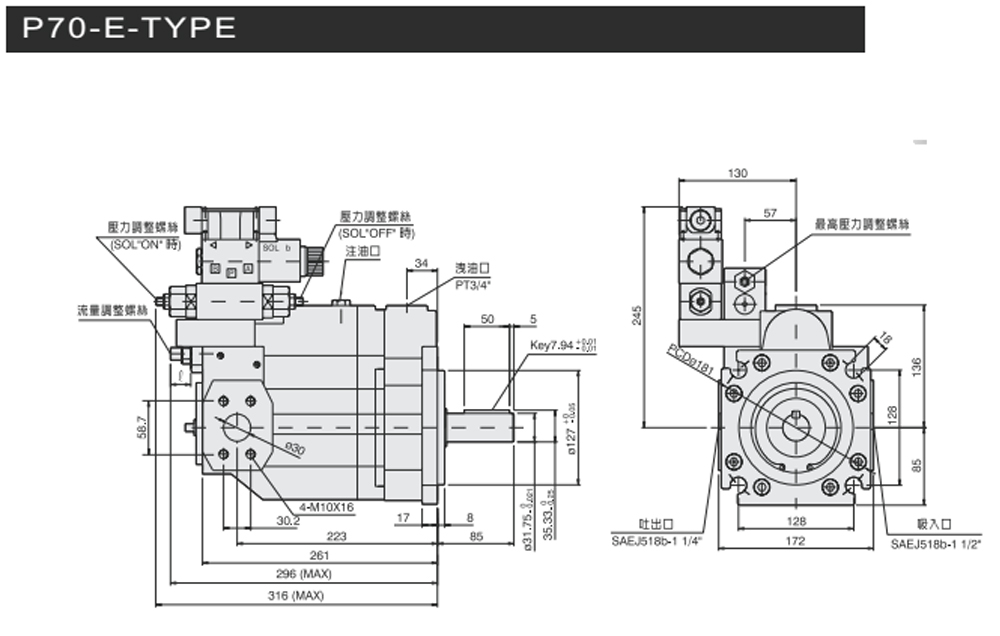 變量柱塞泵P系列電磁兩段壓力控制型尺寸圖