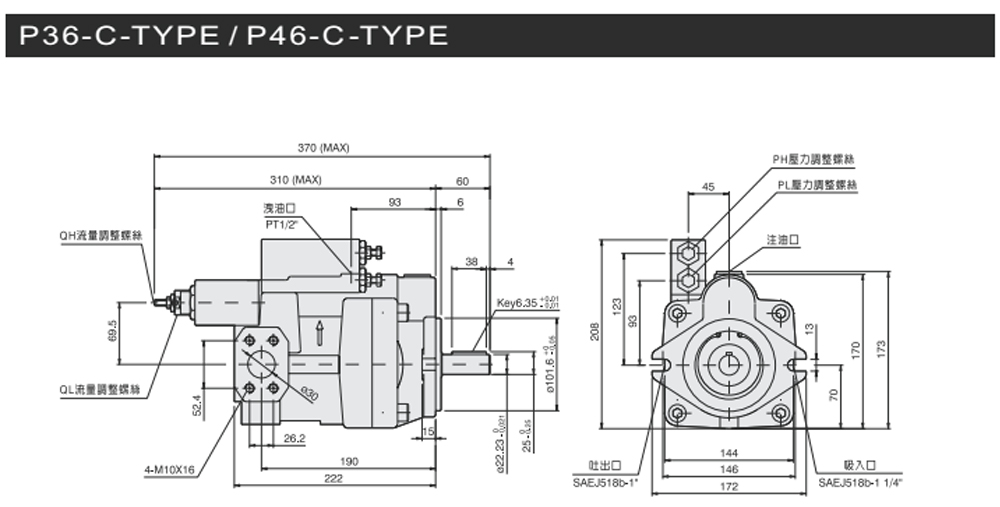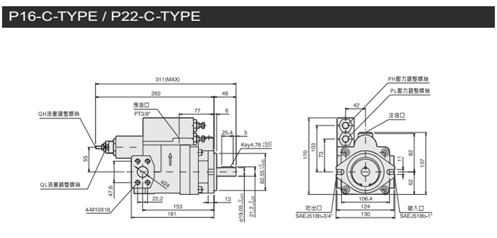 變量柱塞泵P16/22-C-*尺寸圖下載 變量柱塞泵P36/46-c-*尺寸圖下載