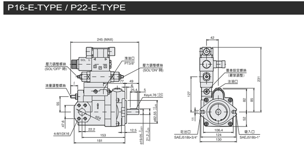 變量柱塞泵P16/22-E-*尺寸圖下載 變量柱塞泵P36/46-E-*尺寸圖下載