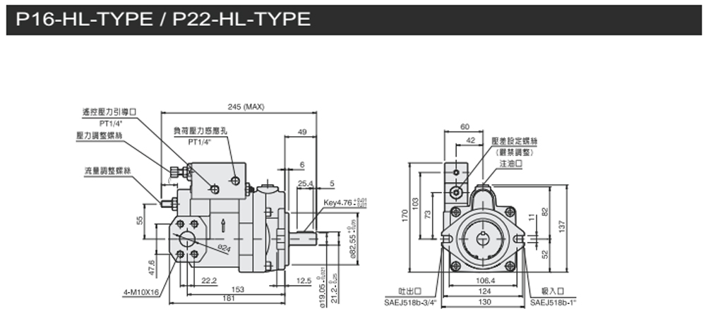 變量柱塞泵P系列壓力引導(dǎo)式遙控型尺寸圖