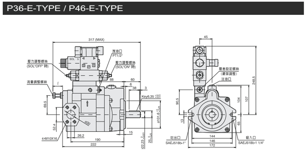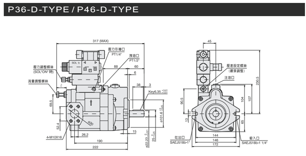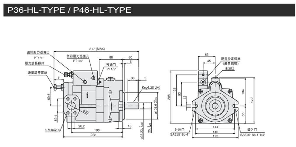 變量柱塞泵P系列壓力補償控制型尺寸圖