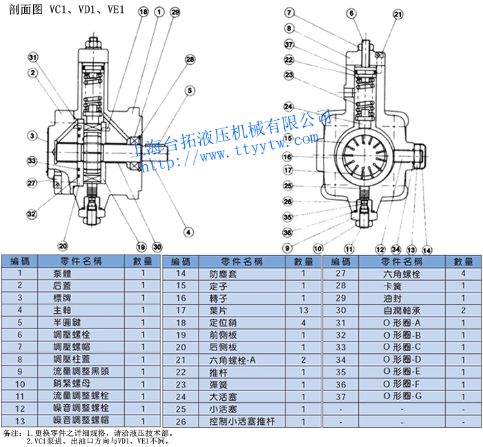 低壓變量葉片泵VA1、VB1剖面圖下載 低壓變量葉片泵VC1、VD1、VE1剖面圖下載