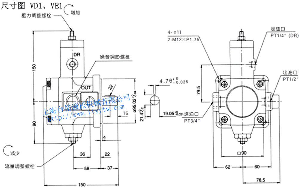 低壓變量葉片泵VD1、VE1尺寸圖下載