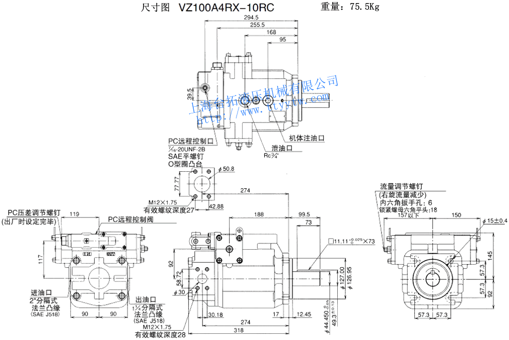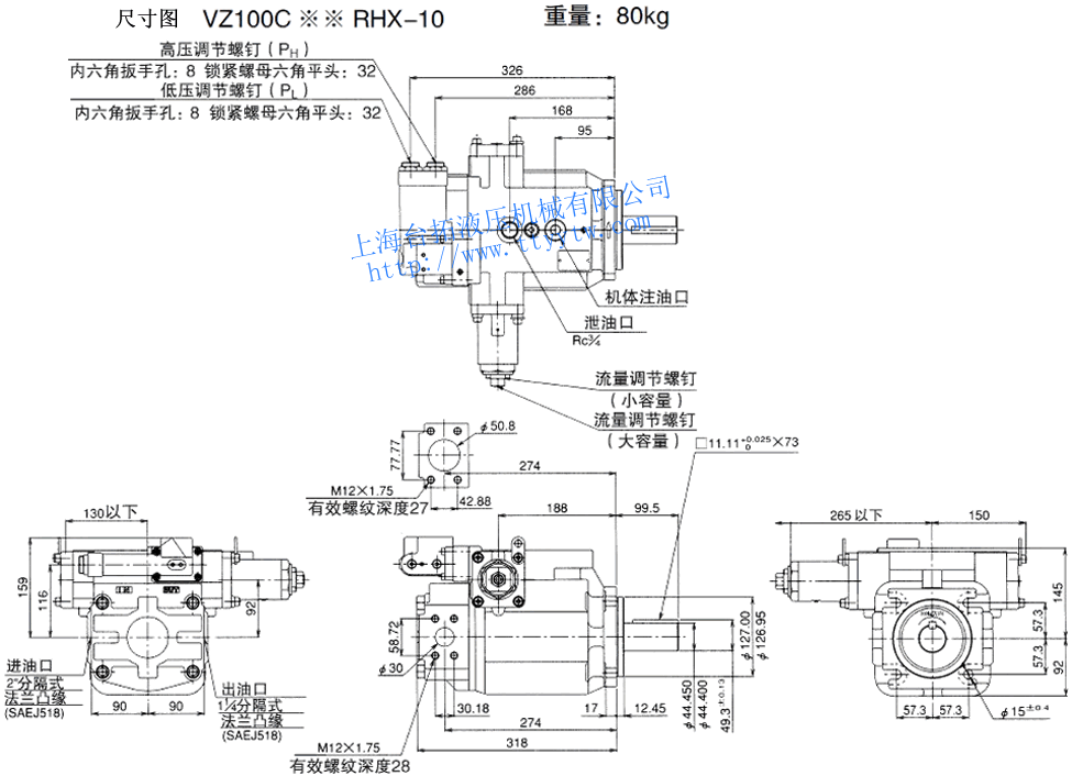 變量柱塞泵VZ80C*RHX-10尺寸圖下載 變量柱塞泵VZ80C**RJ*X-10尺寸圖下載