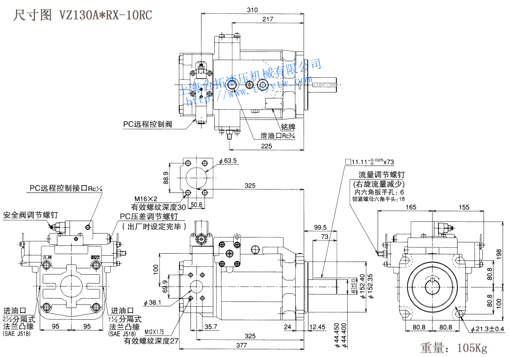 變量柱塞泵VZ130A*RX-10尺寸圖下載 變量柱塞泵VZ130A*RX-10RC尺寸圖下載