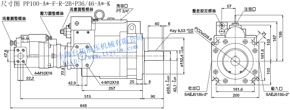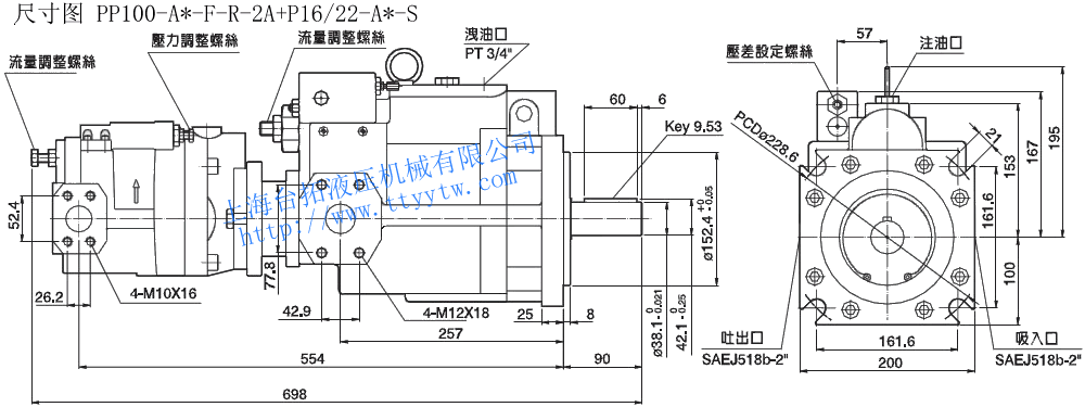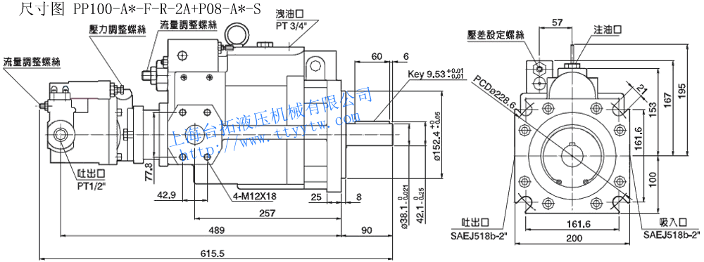 雙聯(lián)變量柱塞泵PP16~PP100尺寸圖