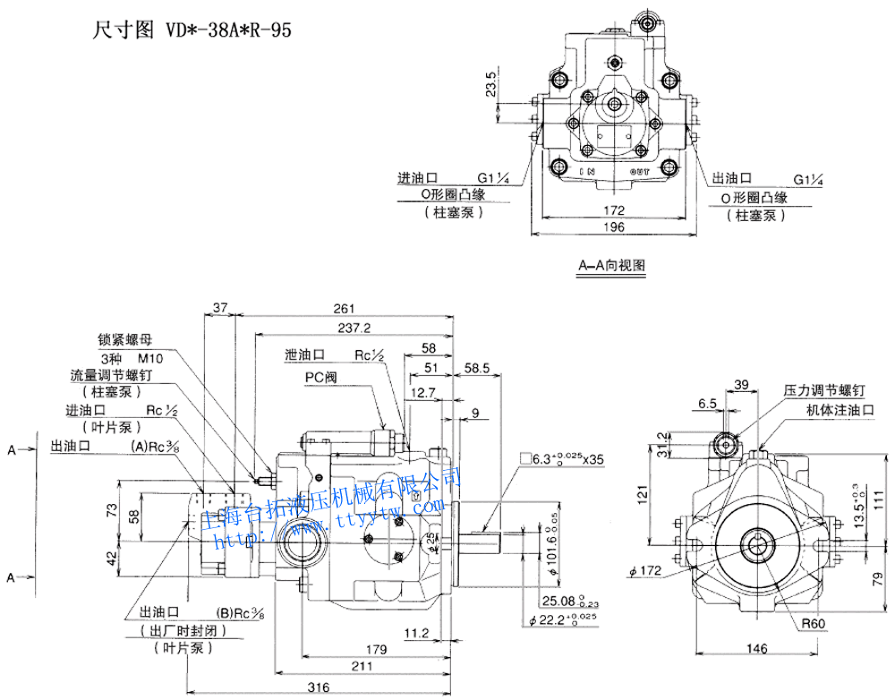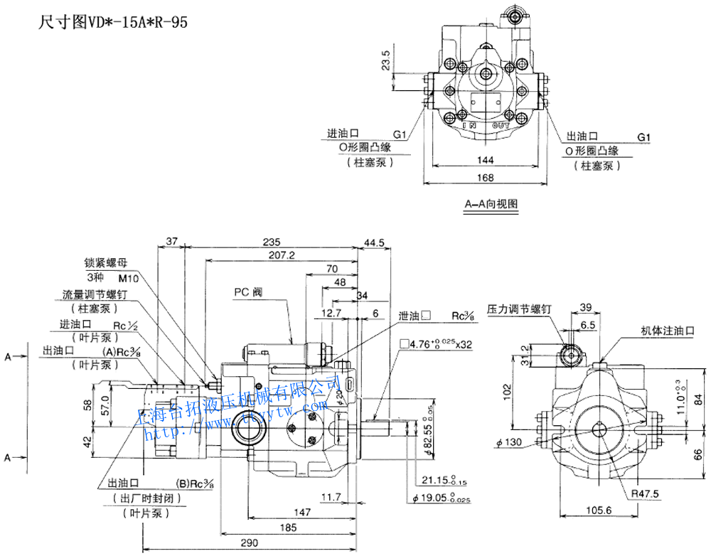 雙聯(lián)變量柱塞泵VD*-15A*R-95尺寸圖下載 雙聯(lián)變量柱塞泵VD*-38A*R-95尺寸圖下載